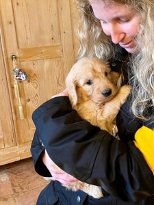 Ein weiteres Highlight für mich war der Besuch der Führhundschule, wo ich das Trainingsgelände, Harrys (wirklich großen!) Bruder und noch eine ganz besonders entzückende Überraschung sehen durfte. Nichtsahnend betrat ich den Raum, wo ich sämtliche Harry-relevante Unterlagen bekommen sollte, da sah ich sie, die Welpen! Winzigkleine, verschlafene, tapsige Goldendoodlewelpen.